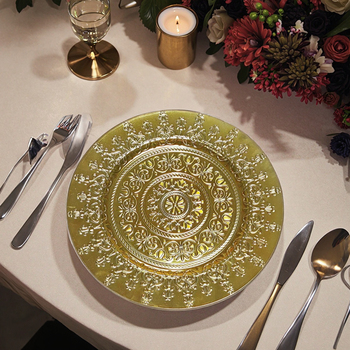 शादी के लिए उच्च गुणवत्ता वाले सुरुचिपूर्ण लक्जरी अनुकूलन योग्य सोने की प्लेट चार्जर प्लेट 33 सेमी आधुनिक शादी पार्टी सजावट