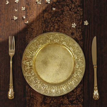 Luxe Decoratieve Plastic Opladerplaten Rond Klassiek Ontwerp Duurzaam Bruiloftsfeest Gerechten Groothandel Leverancier Hot Sale