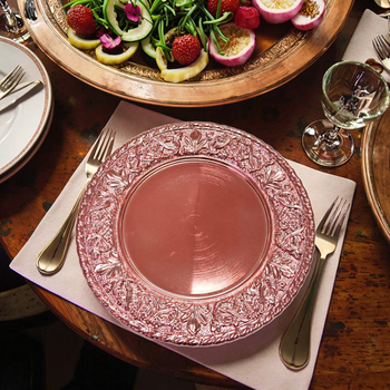 Lüks dekoratif plastik şarj aleti tabaklar yuvarlak klasik tasarım sürdürülebilir düğün yemekleri toptan tedarikçinin sıcak satış